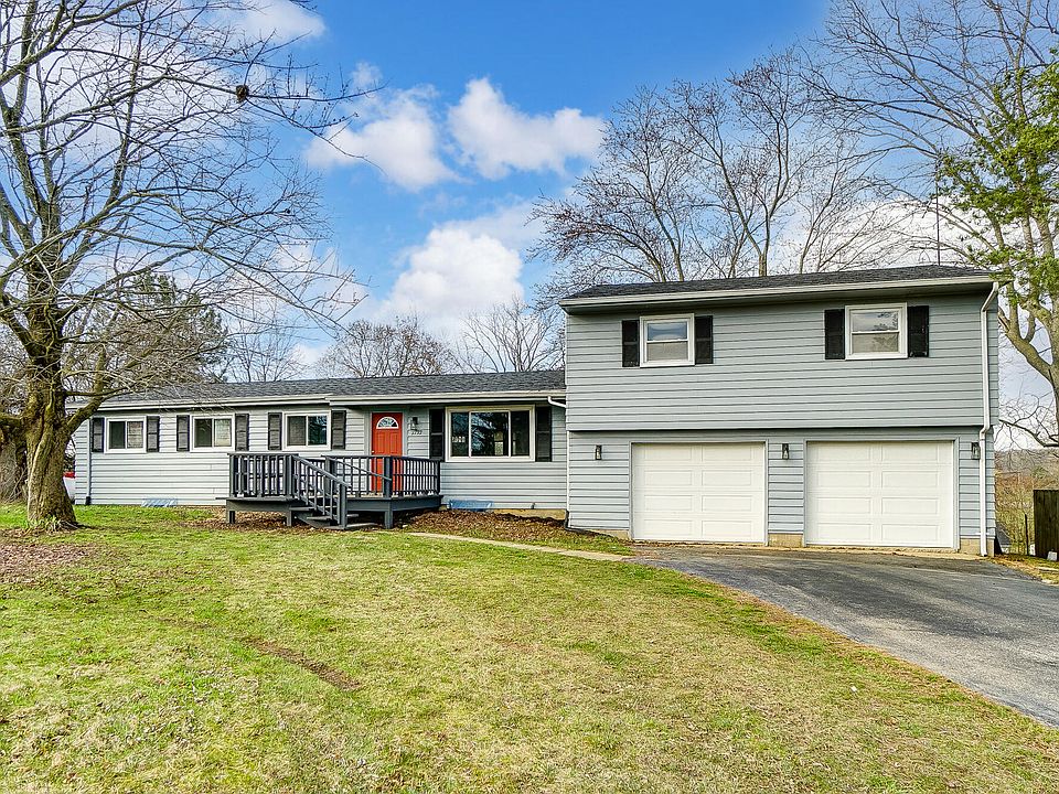 Stunning rehab on this tri-level home located in the country offering nearly 2000 square feet plus a basement that could be finished for additional living space. Living room has vaulted ceilings and is fully open to the dining room and kitchen presenting a full open concept. Kitchen was remodeled with new cabinets, granite counter tops, farmhouse sink, flooring and fixtures. All new stainless appliances will convey. If you need 2 master suites, you found it! Beautifully redesigned main owner's sweet measures 25' x 25' with brand new ensuite with walk in shower, new vanity, new commode, new drywall and new fixtures. Second master suite has Jack-n-Jill style ensuite with the guest bathroom. Plus 3 more bedrooms! (5 bedrooms in total and one would make a great den/office/playroom.) New flooring and refinished original hardwood floors throughout this home. All new interior doors and new entry doors. New garage doors in the oversized 2 car garage at 28x26 feet. New plumbing. Newly insulated. All new fixtures throughout. New roof with downspouts installed underground and away from the house. New furnace. New water softener. Basement was structurally reinforced. The entire home has been repainted. New deck off of the kitchen overlooking the rear yard that is surrounded by farmland. Move in at closing! This home is in the USDA eligible area for no money down financing to qualified buyers.