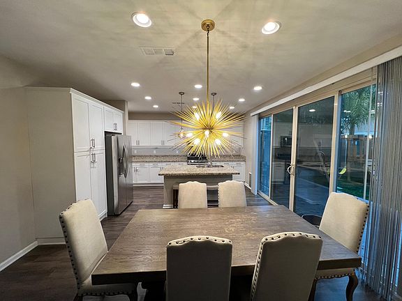 Additional upstairs bedrooms are good size with new ceiling fans and closet doors. There is an upstairs designated laundry room with a newer washer and dryer. The backyard is one of the largest in the community with stamped concrete, entertainment lighting and sound system with beautiful Mediterranean plants and trees. The gated side yard has a dog door - perfect for small dogs to use astroturf near the trash cans.