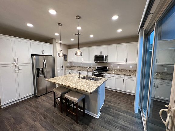 You'll also swoon over... *The desirable corner location, with a large over-sized yard, and mountain views from the second floor loft *The traditional Tuscan stone exterior architecture *The upgraded fireplace and double slider doors at the great room *A beautiful wrought iron open rail staircase with stained wood hand rail *A matte white shaker thermofoil cabinetry throughout the whole home *A kitchen featuring granite countertops and granite island with 6" backsplash at counter perimeter *Wood grain laminate (waterproof) flooring throughout first floor living area and kitchen, upgraded nylon durable and stain/soil resistant carpeting on the stairs and second floor living areas, and ceramic tile in the bathrooms and laundry room *A spa-like master bath with a large soaking tub and glacier white e-stone countertops *Additional upgrades include two-tone paint throughout the home, electrical upgrades in all bedrooms, and additional flush lights in the great room *This home has it all. Rent today!