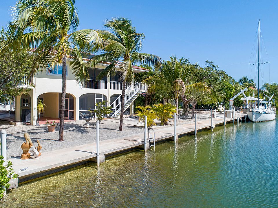 120 ft concrete dock, drive on your paver driveway to your gated piece of paradise concrete block 2/2 1456 sq feet home upstairs, french door to screened patio, 884 downstairs + screened patio downstairs, impact windows, metal roof, new a/c, solar heated concrete screened pool, utility building, this home has everything.