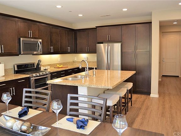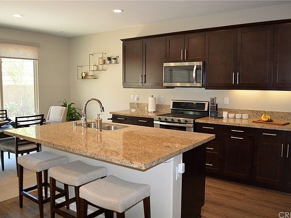 Light, bright, and beautiful, this energy efficient 4-bedroom, 3 bath Grayson home awaits you at Five Knolls. Desirable floorplan with 1 bedroom and a 3/4 bath downstairs. Wide plank laminate flooring greets you at the door and runs throughout most of the lower level. The spacious great room with fireplace, opens to the dining area and kitchen. Kitchen features shaker cabinets, granite counters, gourmet island with seating, under cabinet lighting, built-in recycle bin, and stainless appliances including double oven and refrigerator. Downstairs bedroom has been converted into a sound studio and includes acoustic sound treatments affixed to the walls and ceiling. A modern slider off the dining area leads you to welcoming back yard with stamped concrete patio and walkways, outdoor kitchen island with built-in barbeque, an above ground hot tub, and built-in firepit with seating, all set beneath strings of lights for dazzling evening entertaining. This pet friendly yard also includes a spacious dog run. Upstairs you'll find the loft and the laundry room with storage shelves and a utility sink. The master suite looks out to the backyard, and the well-appointed master bath features dual vanities, separate tub and shower, and a generous walk-in closet. The 2 additional bedrooms share a bath with dual sinks and shower in tub. The 3rd bedroom has a walk-in closet and private balcony. The resort style HOA amenities at The Club include a pool, spa, clubhouse, gym, and more.
