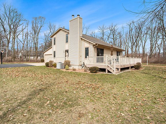 Welcome to this great home that is located 400' off the road on a 4.10 acre setting in the desirable Grandville School District. The park like setting has woods, a 24' x 40' pole barn, additional out buildings, and underground sprinkling. This meticulously maintained 4 bedroom, 4 bathroom home features a spacious great room w/gas fireplace and sliders to the private wraparound PVC deck. Main level living has the primary bedroom, bathroom, nice sized kitchen w/snack bar, dining room w/slider, wet bar rail, and a half bath. Upper level overlooks the great room and has 2 bedrooms and a full bathroom. The finished lower level boasts a large family room w/fireplace, bedroom, play/office area, full bathroom, utility room, and storage. Newer updates include, roof, furnace, washer and and dryer. You will find Luxury Vinyl Plank flooring throughout the main and upper level. All appliances included. The attached garage has heat and air conditioning. It's not very often you can be close to a shopping mall, restaurants, highways and still feel like you are country living, this is perfect for its new owner(s) to make new memories. Wildlife abounds of deer, and many different species! Call to see this one today!