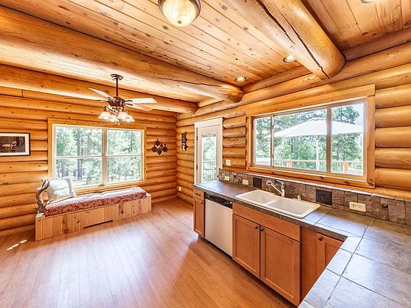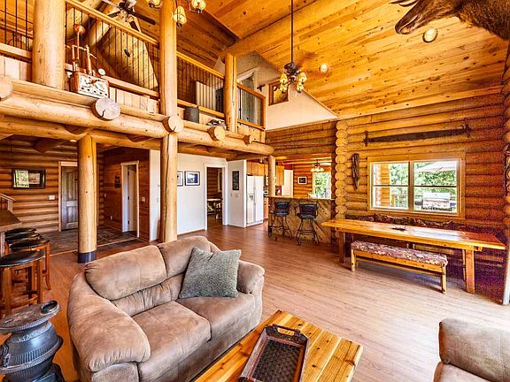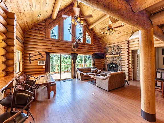 LOG CABIN LIVING IN MOUNTAIN VIEW ESTATES! This custom LOG HOME enjoys expansive decks and views- Eureka Peak, Mills Peak and 360 degree views of Forest lands. Just ask FRITZ, the Elk that lives on the great room wall! He lives here and he watches over everything! The Slate entry opens up to the Great room with rocked fireplace, Extrodinaire fireplace, huge soaring log beams, ceilings, posts....wood-like laminate floors, flow into Bar Area with fridge, sink and copper counter! Open kitchen with window seat and more views, Custom tile counters & slate backsplash, 200 year old Vermont Maple counter top too! Enjoy entertaining & meals at the 8' dining table. Master Bedroom with ensuite bath on main floor - sliding door onto massive deck, see Eureka Peak from the Bed! (really!). Custom tile shower and Jacuzzi tub, spacious walk in closet. Guest room on the main level with full bath! Log steps lead to the Loft Area/Game Room (open to below) - FRITZ is keeping an eye on you! Two extremely large bedrooms, each with a door to the outdoors and small balcony - where you will enjoy greater views! A full bath is on the second level as well. The over 2+ Acre parcel is packed with a lot of AMAZING FEATURES. Some furnishings included AND..... FRITZ will stay too! This mountain-style Log Home is ready when you are --- full time, or vacation home in the Mountains near Clio, Graeagle and the Mohawk Valley. Come check it our for yourself - see why it is the Best Kept Secret in the Sierras!