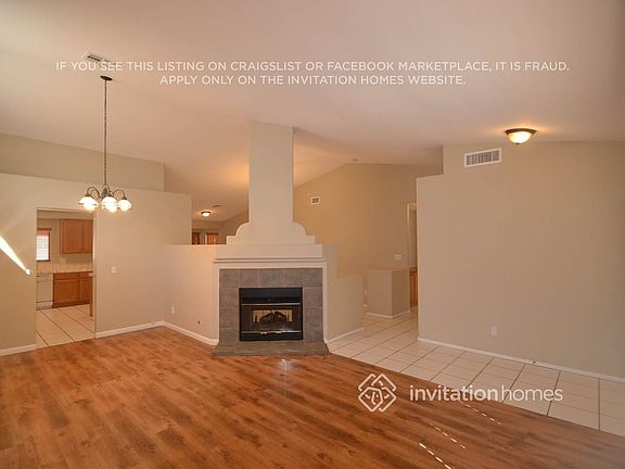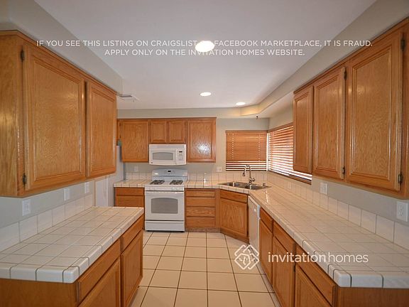 Lease this home and get more from Invitation Homes professional property management. This home comes fully loaded with quality amenities, must-have services, high-end tech and ProCare professional maintenance. Your estimated total monthly payment is $2194.95, which includes base rent and required services. Base rent varies based on selected lease term. This charming home is a must-see! This house features two fireplaces, one in the entry family room and the other in the dining area. There is tile flooring throughout, and the kitchen boasts bright wood cabinetry and sleek tile countertops to match the floors. The master bath boasts a dual-sink vanity and garden tub, and you'll enjoy the car garage for its extra space. Make this house your home. Apply online today!
