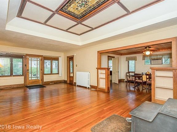 Come see this charming craftman's style home. 3 bedrooms, 2 baths, that sits on a large corner lot. Living room with wood burner and recessed ceiling with pretty stained glass. Beautiful hardwood floors throughout. Formal dining room features a copper ceiling. Eat-in kitchen features lots of cabinetry, newer stainless steel appliances. The stainless steel Samsung refrigerator has many features, and the stainless steel stove has the 5th burner. There is an eat-in area with many windows giving the kitchen lots of light. Natural woodwork. There is a 1 car attached garage, and detached 2 1/2 insulated garage with a carport. Metal standing seam roof is about 3-4 years old. Hot water heater and High Efficiency boiler. Close to Drake, freeway, many churches and schools. It is in a very good quiet neighborhood with NFC financing available.