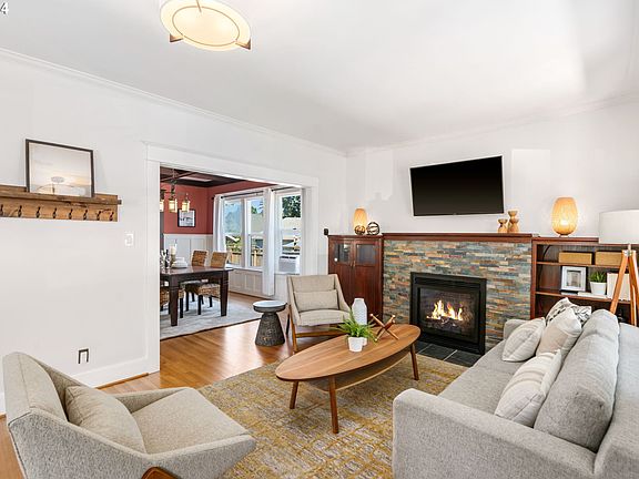OFFER DEADLINE THURSDAY AUG. 1 AT 9:00AM. Craftsman charm with wonderful period appropriate updates in coveted Rose City Park! Broad-shouldered home with a welcoming and expansive covered front porch and a rare 2-car garage! Fantastic floor plan with three bedrooms and a full bathroom on the second level. The sunny and bright remodeled cook's kitchen opens onto the covered back patio and landscaped backyard - perfect for indoor/outdoor entertaining. The living and dining rooms boast a gas fireplace, built-in storage, box-beam ceiling, wainscoting, period light fixtures and hardwood floors. The lower level contains laundry and an abundance of storage. New roof 2023, Exterior paint 2024, newer windows. Ideal urban location within the historic Rose City Park neighborhood, founded in 1907, the year of the first Portland Rose Festival - enjoy neighborhood sponsored events such as the July 4 bike parade, and summer concerts and movies in the park. Easy and quick access to shopping, golf, parks, and restaurants. Walk Score 78 & Bike Score 77. A whole lot to love! [Home Energy Score = 6. HES Report at https://rpt.greenbuildingregistry.com/hes/OR10000361]