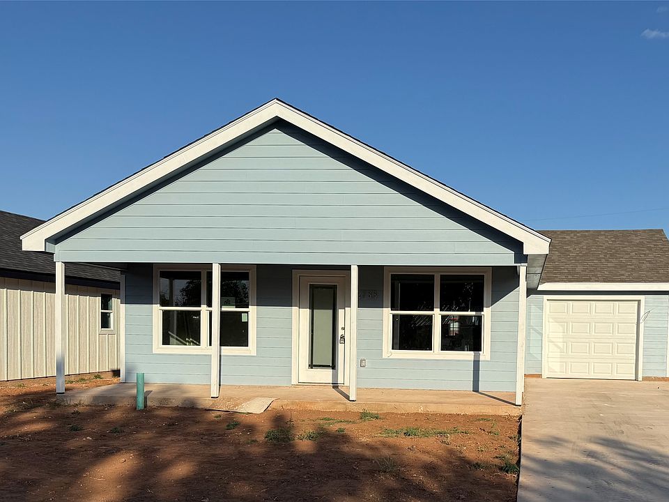 Agent related to owner. This beautifully crafted new construction home offers 3 bedrooms, 2 full baths, and an open-concept floor plan filled with natural light. The spacious living area features vaulted ceilings and recessed lighting, creating a warm and inviting atmosphere. The kitchen showcases granite countertops, a large island, and stainless steel appliances including electric range, dishwasher, and microwave. The primary suite includes a generous walk-in closet and a private en-suite bath. Two additional bedrooms and a full hall bath provide plenty of space for family or guests. Luxury vinyl flooring flows throughout the main living areas with carpet in the bedrooms. A separate utility room offers full-size washer and dryer connections for added convenience. Single car garage. Enjoy your morning coffee or evening tea on the charming front porch. The yard will feature sod in the front and a fenced backyard. Conveniently located close to Hendrick North Hospital, Hardin-Simmons University and I-20 for any commute and making it easy access to all things Abilene! Another quality home built by Mayhem Solutions! Estimated completion date mid November. Some photos are representation of property but not actual home. Photos are from prior finished home with same floor plan and will have similar selections.*This property is part of the Rebuild Abilene Program with the City of Abilene. Must be purchased to be owner occupied for the first 2 years.*