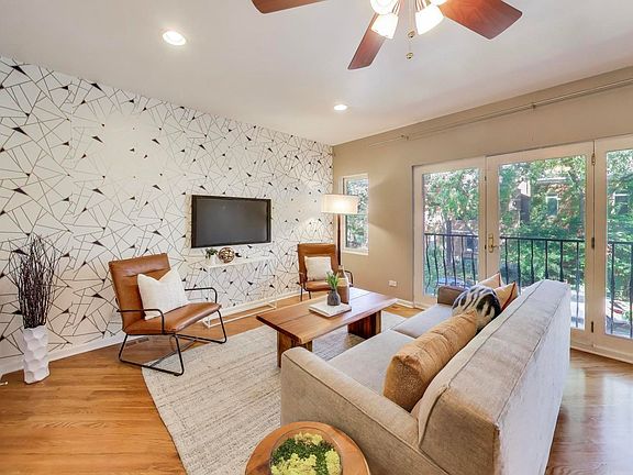 Live in the best pocket of Humboldt Park-just one block from the park yet tucked away on a quiet, tree-lined street. This meticulously maintained 2 bed, 2 bath condo offers the perfect mix of comfort, convenience, and location. The spacious layout features hardwood floors in the main living areas, cozy carpet in the bedrooms, and a welcoming wood burning fireplace at the heart of the home. The kitchen is equipped with stainless steel appliances, plenty of storage-including a rare pantry-and opens seamlessly to the living space, making it ideal for both everyday living and entertaining. The massive primary suite is a true retreat, with incredible natural light streaming through a floor-to-ceiling sliding door that opens to a private balcony. There's ample room for a king bed plus extra furniture, a full wall of closets, and a spa-like ensuite with a soaking tub and separate shower. Additional highlights include in-unit laundry, a gated parking space with an EV charging outlet, and a well-managed building with a proactive association. Enjoy unbeatable access to the park for morning runs or weekend picnics, and walk to all the restaurants, coffee shops, and nightlife along the California Corridor: The Hi-Lo. Spinning J, La Boulangerie, Segnatore, Rootstock and more.