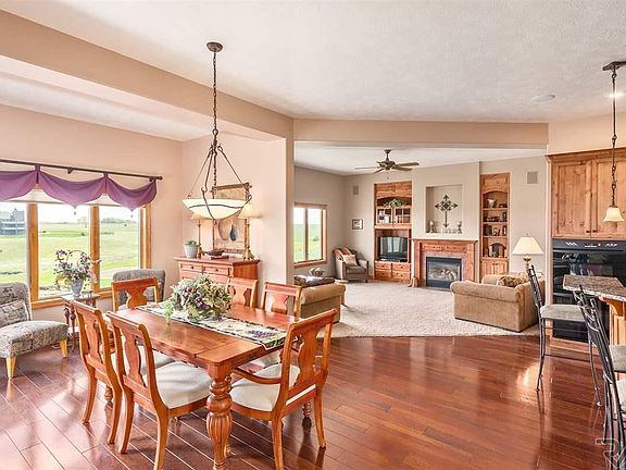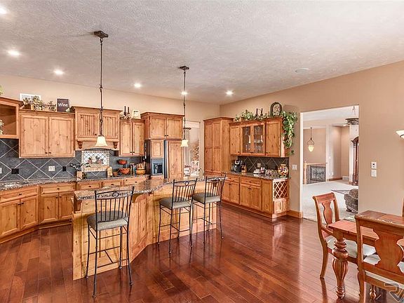 Shimmering Ranch On 1.3 Acres W/Almost 7,000 Sq.Ft. Overflows W/Tremendous Amenities & Just Min. From SF-Best Deal In Town, $90/Sq.Ft! Kitchen is glowing w/oodles of Knotty Alder cabs, granite center island & hardwood floors stretching into huge dining offering breathtaking views & easy access to grand composition deck. Entertainer's dream w/kitchen, eat-in dining & MF family drenched w/built-ins & gas FP, all open. Gorgeous formal dining w/tray ceiling & impressive window system & formal living room. MF master suite is relaxing haven, w/crown molding, dble van, heated floor & W/I tile shower. LL goes for days w/2nd FP, wet bar, HUGE game rm, wine cellar, sun rm & W/O access to 2nd expansive deck, exercise, bonus PLUS theater rm. You'll LOVE the giant drop zone, fully equipped golf simulator & 4 stall garage. Lush front yrd w/beautiful patio & landscaping as well as bckyrd overlooking 9 Mile Creek, NO NEIGHBORS & tons of space to roam! Home audio system, central vac, solid workmanship.