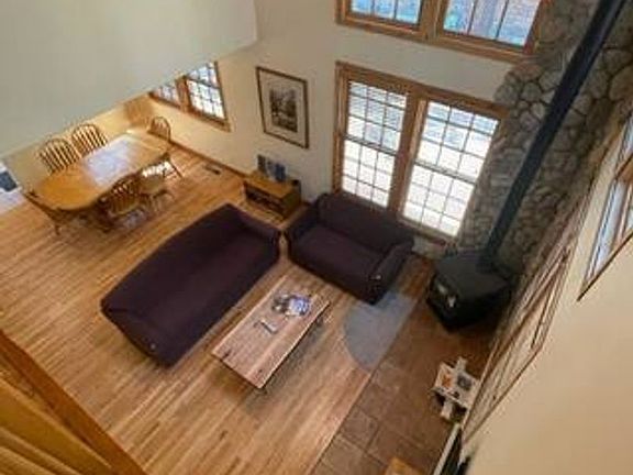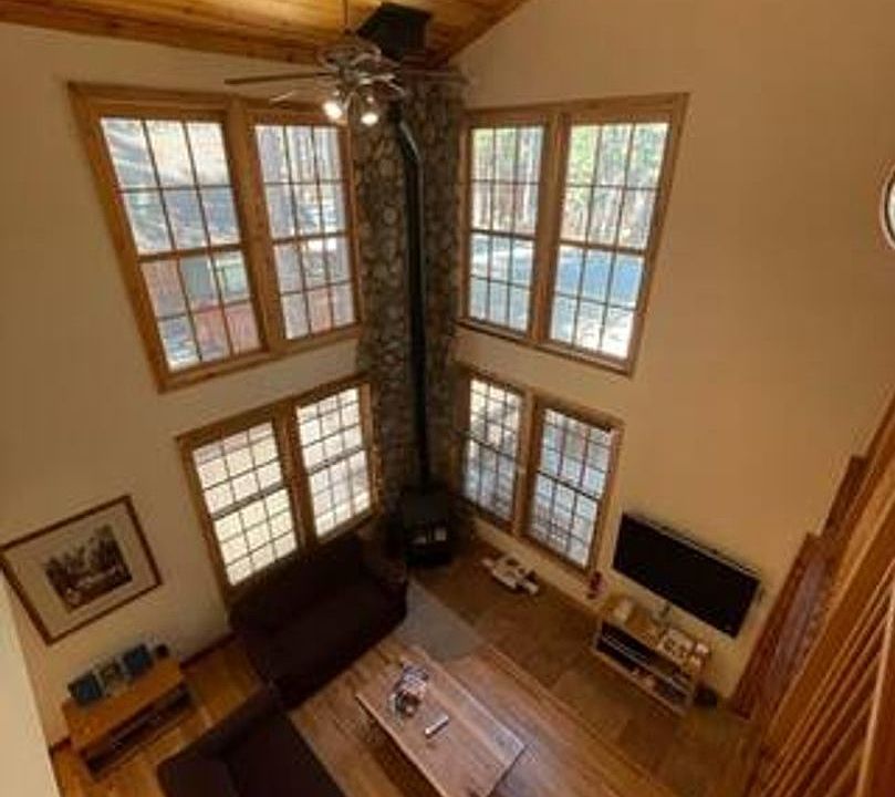 This charming knotty pine cabin features an open great room with a wood burning stove, new flat screen television, a very roomy, super comfortable couch and a new gas heater. This is a great spot to relax after a long day skiing or playing at the beach, depending on the season.