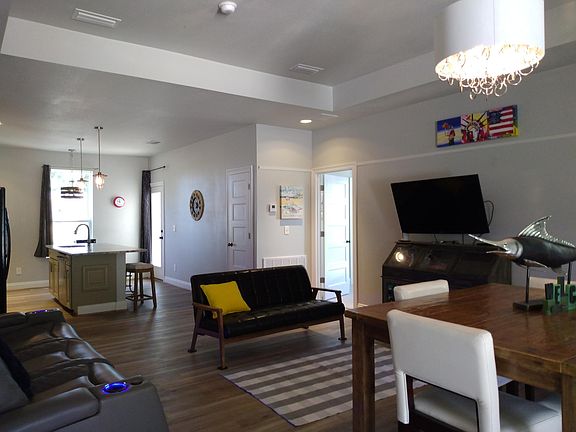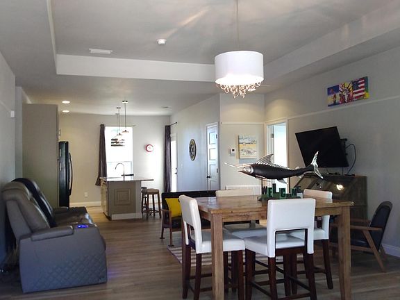 Beautiful open concept house. Completed in 2021, very private rd, great location,500 ft from East Bay 11mile multi walk path,2 car garage with covered porch or additional parking, vinyl floors with carpet in master bedroom, walk in closet and front bedroom. Dual sinks in master bath, soaking tu and shower. Back door off master suite to covered back porch. Hugh master! Granite tops, beautiful taupe 42” cabinets, large laundry/ office. A must see property. High ceilings. Energy Efficient.