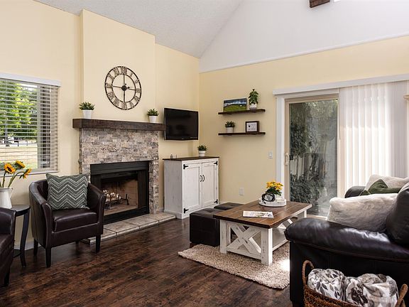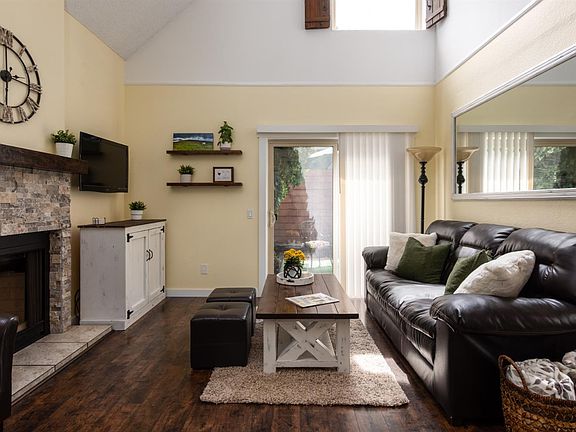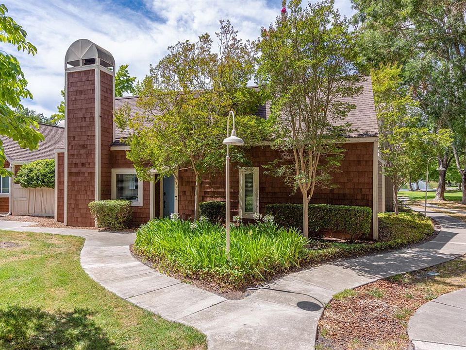 Nestled beside a peaceful lake and mature gardens, this charming three-bedroom home offers the perfect blend of natural beauty and modern comfort. You'll feel right at home with a cozy wood-burning fireplace, hardwood floors, central heating, and air conditioning for every season. The kitchen is a bright and welcoming featuring granite countertops, crisp white cabinets, stainless steel appliances, and a reverse osmosis water filter. Each bedroom is designed for comfort, with soft carpeting and plenty of closet space. The updated bathrooms feature fresh, modern finishes, and the private upstairs master suite feels like your own getaway, complete with a walk-in shower and peaceful atmosphere. Enjoy two private outdoor spaces ready for BBQ, gardening and relaxation, and the detached one-car garage offers ample space for storage. As a part of this friendly community, you'll enjoy access to a clubhouse with a library, billiards, and ping pong, along with two sparkling pools. Centrally located, this home offers easy access to wineries, golf and top-rated schools.