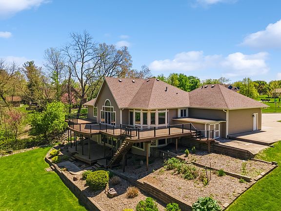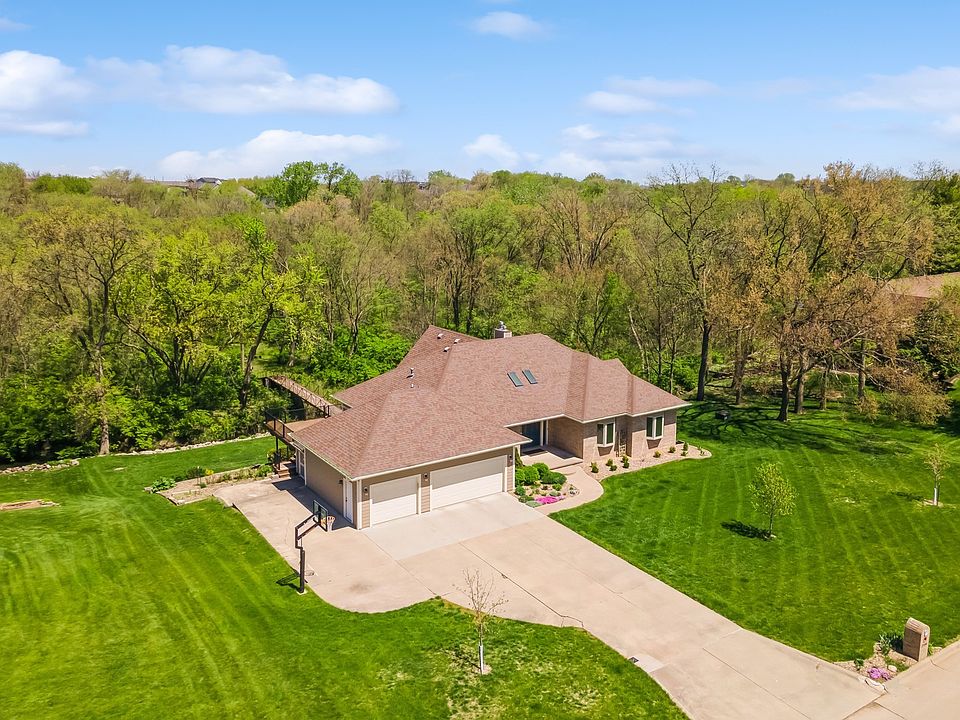 In Ankeny's Greenwood Acres is this amazing ranch home with woods, creek, 6 bedrooms, one bedroom was previously used as an executive office. It sits on 1.6 acres with the back portion being the woods. The home was quality built with 2x6 construction and well insulated. The main floor has 9' ceilings throughout with vaulted living room. There are 3 bedrooms, an open kitchen, dining area and laundry room on the main floor. There's tons of natural light with the wall of windows facing the woods plus skylights in strategic areas to give extra lighting. The home has newer LVP flooring throughout the open area and is freshly painted. You will find stainless steel appliances, Viking refrigerator plus double wall ovens and cooktop. The dining area is spacious and can accommodate a very large gathering for the holiday feasts. The lower level has an enormous family room with wet bar, cupboards and mini-fridge. There are three more huge bedrooms. The 3 car garage has built-in cabinets from wall to wall. There are wrap around decks both on the main floor and the walkout level for enjoying the outside! More details are available during a showing. A one year home warranty on mechanicals and appliances to be included with purchase of home.
