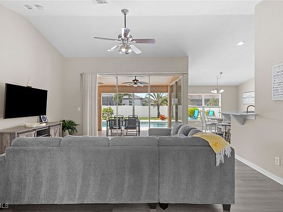Nestled in the heart of Southwest Cape Coral, just off Surfside Boulevard, this inviting 3-bedroom, 2-bath plus den pool home combines Florida charm, modern comfort, and a lifestyle designed for family living. Features an open floor plan with vaulted ceilings, large windows allow natural light to fill the home , and split-bedroom layout. The kitchen offers ample cabinet space and a functional breakfast bar, making it easy to prepare meals while interacting with family or entertaining guests and pool views. Peace of mind with newer A/C and roof approx. 5 yrs old. Master suite includes walk-in closet and lanai access. Enjoy outdoor living with a open air pool, covered lanai, and fenced backyard. On city water and sewer – all assessments paid. Close to shopping, dining, and schools. Not in a flood zone. Ideal for full-time residence or seasonal retreat.