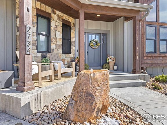 Custom-designed 6-bedroom, 5-bath estate in the gated Rookery at Heron Lakes at TPC Colorado, where breathtaking mountain, water, and open-space views set the backdrop for refined Colorado living. This striking 6,567 SF residence, sitting on a ~.32 acre lot, makes a statement upon arrival with manicured landscaping, a timeless water feature, and architectural presence that carries through the interior. Designed for effortless entertaining and elevated everyday living, the open floor plan flows into a dramatic great room with soaring ceilings and a floor-to-ceiling stone fireplace framed by custom built-ins. The chef's kitchen is both beautiful and functional, featuring quartz countertops, custom knotty alder cabinetry, built-in appliances, and a substantial island that anchors the space. A sun-filled morning room and formal dining room with a butler's bar and wine refrigerator extend seamlessly to two covered back decks, creating exceptional indoor-outdoor living. The main level offers a private guest suite, generous laundry room, thoughtfully designed storage and access to the heated oversized 3-car garage. Upstairs, the primary retreat is a true sanctuary with a coffee bar, see-through fireplace, spa-inspired bath with steam shower and soaking tub, custom walk-in closet, and a private covered balcony for taking in unforgettable sunsets. The walkout lower level expands the lifestyle with a spacious recreation room, wet bar, additional bedrooms, covered patio, and gas firepit. A heated, recreation-ready garage with epoxy floors, dog wash, and dog run completes the home. Rookery residents enjoy access to resort-style amenities including a pool, clubhouse, fitness center, nearly 9 miles of trails, over 130 acres of open space, 4.5 miles of shoreline, and deeded TPC Colorado membership with world-class golf privileges. An exceptional opportunity to secure luxury living, privacy, and lifestyle in one of Northern Colorado's most sought-after gated golf communities.