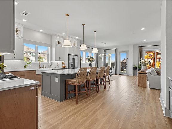 Welcome to 2734 Thunder Creek, a show-stopping David Weekley custom in Katy’s premier Cane Island! Just 2 years old and never before on the market, this 3,200 sq. ft. corner-lot beauty blends modern elegance with thoughtful upgrades. The striking exterior sets the tone, while inside, soaring ceilings and walls of windows flood the home with light. The chef’s kitchen is a dream with designer cabinetry, stainless steel appliances, a massive island, and seamless flow into the open living and dining spaces. Motorized shades, custom accent walls, epoxy-finished garage, whole home standby generator, a Puragain water filtration system and more upgrades add luxury and convenience. A private study and a dedicated media room complete this one of a kind home. Retreat to the serene primary suite or entertain outdoors on the oversized covered patio overlooking the spacious backyard. With Cane Island’s award-winning amenities and top Katy ISD schools, this rare opportunity won’t last!