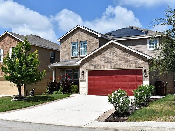 SPACIOUS family HOME with GREAT BACKYARD in BOERNE ISD, plus a HUGE SOLAR system. Keep the AC set low because the more sun there is the more electricity you'll have! Solar generates over $200 month in electricity since the install. Insulate yourself from the sun and rising energy costs (Solar Guarantee below). Over 2600 sq ft, an open floor plan, 9 ft ceilings, lots of light and 400+ sqft patio, and tiered backyard give your family plenty of space to entertain. 4th bdrm with full bath on first floor, as well as a study with great light and wooden floors. Upstairs boasts a large game room, 3 bedrooms and a laundry room. Large master bedroom with walk in closet for owners to enjoy. Large kitchen with plenty of cabinets and Whirlpool appliances include refrigerator, range, dishwasher and microwave. Security monitoring system remains w/no additional fee req. Extensive landscaping with front and back sprinklers, fruit trees, and vegetable/herb garden.