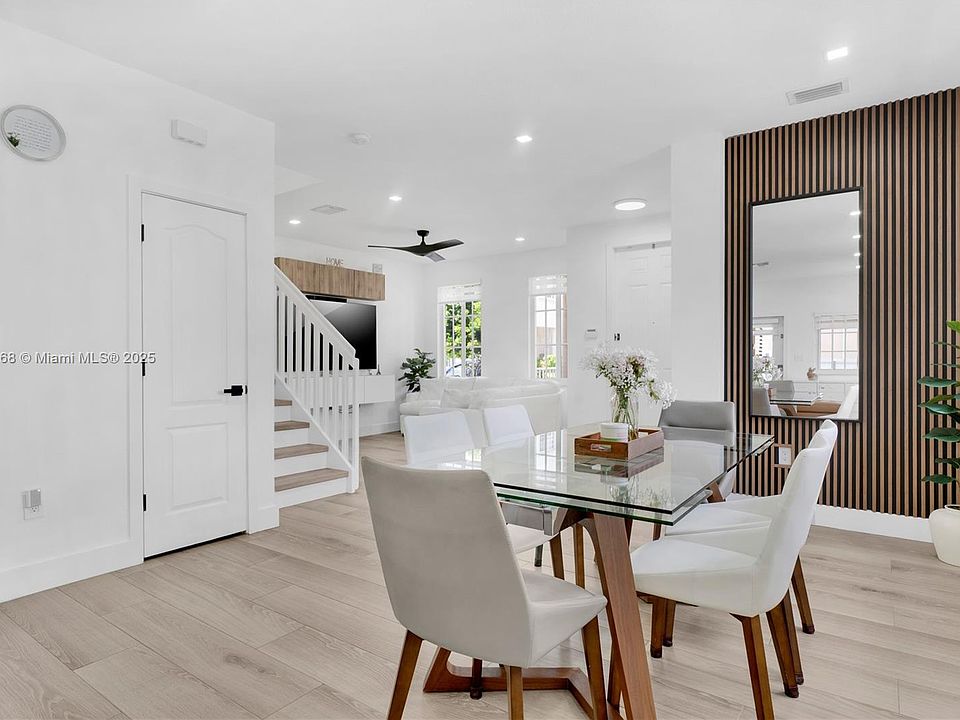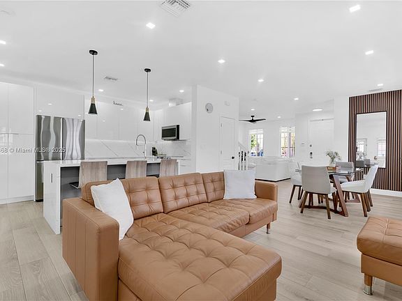 Stunning home featuring aluminum fencing, spacious concrete patio with pergola, and full impact windows & doors. Inside, enjoy a brand-new kitchen with quartz counters, all new bathrooms, and custom closets in every room. First floor boasts wood-look porcelain tile, while the second floor offers water-resistant LVP flooring. Additional upgrades include recessed lighting throughout, a 2019 Trane A/C, and a 2020 water heater. Modern, stylish, and move-in ready! HOA fee includes Cable TV, Internet & Landscaping.