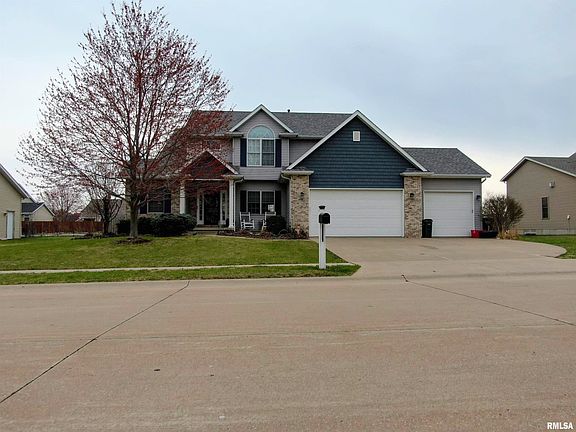 Spacious and well appointed 2-story home in Davenport. A front porch and entry foyer welcome you. Main floor offers formal dining room, office with double glass doors, family room with built-ins surrounding fireplace, a eat-in, island kitchen and laundry room. Upper floor features primary bedroom suite with cathedral ceiling, walk-in closet and private bath with separate jetted tub and shower. 3 additional bedrooms and shared bath complete upper floor. Basement is partially finished, including framing, rough-in for bathroom and egress window for bedroom. Fenced backyard with large brick patio with built-in bench. Carpet in bedrooms replaced in 2020. New A/C in 2023. New LVP flooring in upper hallway and new carpet on stairs. Fish pond in front yard can be filled if buyer desires. Backyard has a chicken run and incomplete shed. Lawn has been reseeded. Refrigerator in garage stays. Buyer to verify all measurements, measurements on floor plan are only approximate.