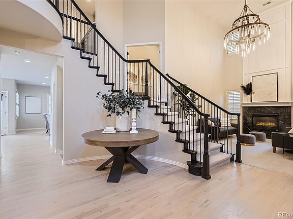 Truly shows like a model home! Nestled at the top of the hill, steps away from 8,000 acres of open space on a quiet street in the sought-after Firelight neighborhood, this stunning South facing residence truly exemplifies the epitome of modern elegance. This one-of-a-kind custom layout has it all: 2 laundry rooms, 2 dedicated offices, 5 bedrooms, 6 bathrooms & it’s fully transformed with luxury finishes. You enter through your gated door into a large private courtyard for entertaining and relaxing. Prepare to be dazzled by the fully remodeled & extended gourmet kitchen featuring luxury frameless cabinets, quartz countertops, top-of-the-line appliances including Viking 6-burner gas cooktop, built-in refrigerator, double oven, & 2 built out pantries providing ample storage. There are generous gathering areas including a family room off the kitchen and large deck for indoor/outdoor living, 2 story formal living room where you enjoy a cozy gas fireplace, & an oversized dining room with custom wine wall. This home is perfect for working from home with 2 full studies, hobby room plus a media room. Ascend the curved iron staircase to retreat to the lavish primary bedroom boasting stunning mountain views, custom his & her built-in closets, and a luxurious 5-piece bath complete with a walk-in rain shower and soaking tub. The second laundry upstairs is conveniently hidden in custom cabinets & built-ins. The walk-out basement has high ceilings featuring an amazing children’s play area with climbing wall & other fun activities, a bedroom, full bath, & 1,000 square foot unfinished customizable area for ample storage, exercise room; the options are endless! The epoxy finished 4-car garage features a 3-car garage with tandem space for your extra-long toys and a separate 1-car garage with built-ins for a workshop. Originally crafted by renowned custom builder Joyce Homes, every corner of this masterpiece boasts meticulous attention to detail, unparalleled craftsmanship, & design.