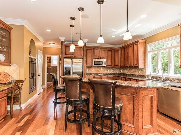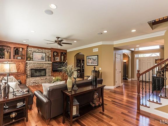 This beautifully updated home offers over 4,800 sq ft of luxurious living space in a prime location within the Rockwood School District. Main level & upper-level feature gorgeous hardwood floors throughout. Formal dining & private office w/ crown molding, a spacious Great Room w/ WB fireplace and custom built-ins, and a gourmet kitchen w/custom cabinetry, granite counters, stainless appliances, a two-tier island, pantry, and breakfast room. The vaulted Hearth Room opens to a private, park-like backyard. Upstairs, the vaulted primary suite boasts dual walk-in closets & a spa-style bath with granite and a soaking tub. Three additional bedrooms, two baths, & a loft complete the second floor. The finished LL includes a rec room, wet bar, media room, family room, & full bath. Add. highlights: Zoned HVAC & filtration system, custom moldings & window treatments, 3-car side-entry garage, Irrigation & exterior lighting, Close to shopping, dining, parks, -this is luxury living at its finest.