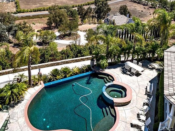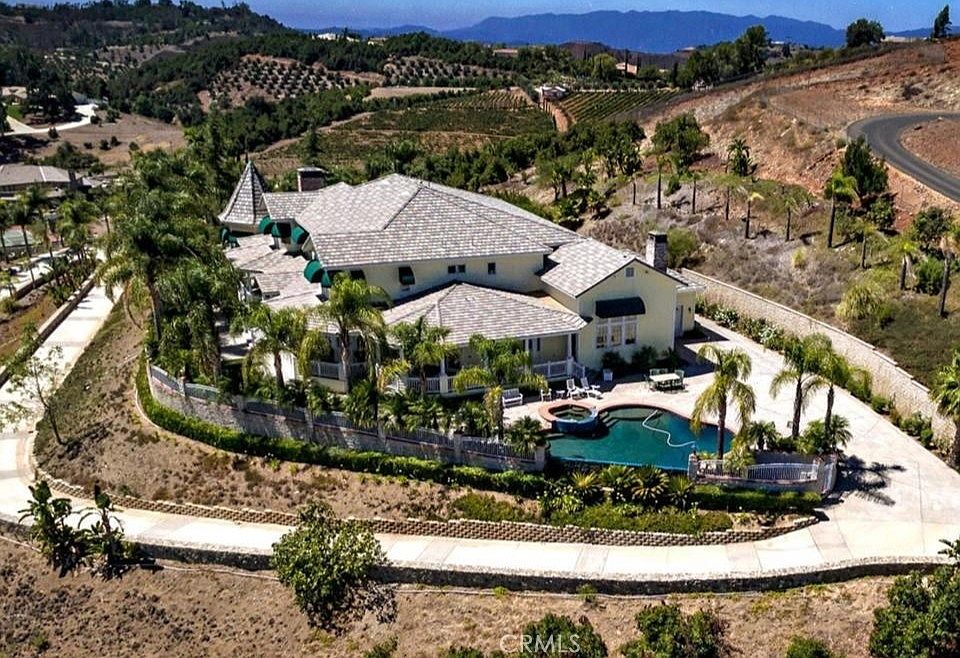 Enjoy panoramic views from this magnificent private estate in the prestigious community of de Luz. Conveniently located 5 minutes from the City of Temecula, yet enjoy the total privacy one looks for in a grand estate. This 9180 sqft estate features a main home With 6 en-suites, two master suites, one downstairs and one upstairs, a 548 sq.ft. 1500+ bottle wine cellar, 2400 sq.ft covered wrap-around porch/balconies, 7 car 1851 sq.ft. garage. Gorgeous wood floors, wet bar in family room, brick Fireplace. The gourmet kitchen features a breakfast bar with seating for 10, a huge center island, 3 sinks, 6 burners commercial grade Viking stove w/dual ovens, GE Monogram built-in freezer/fridge, 2 dishwashers, Viking trash compactor, Pella dual pane windows throughout. Pebble Tech Infinity Edge pool is situated perfectly to enjoy the unobstructed sunrises overlooking the mountains. Outside kitchen & entertainment center with outdoor speakers, unparalleled craftsmanship, and luxury amenities throughout, this estate awaits the most discriminating tenants