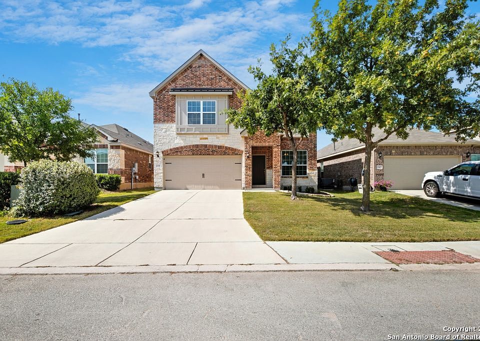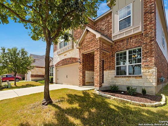 Welcome home! This stunning home in Stonehaven Terrace features the most popular Tafalla floor plan with soaring vaulted ceiling and an open concept that is perfect for entertaining and modern living. This functional plan offers a spacious primary suite with two walk-in closets downstairs and three additional bedrooms upstairs. Many builder upgrades are featured throughout including a dedicated study/office, window bay in the primary bedroom, luxury spa shower in the primary bathroom, dual vanity sinks in bathrooms, hardwood and tile flooring, a striking rustic stacked stone gas fireplace in the gathering room, Whirlpool stainless steel appliances, granite countertops, underground irrigation system for effortless lawn maintenance as well as a covered patio to enjoy those Texas evenings. The home has been meticulously maintained and features "new paint August 2025" making this home a true move in ready option. The property is located within the Boerne Independent School District. No San Antonio city taxes in the Texas Hill Country. Minutes from IH-10, UTSA, USAA, Valero and other major employers. Close proximity to La Cantera and the Rim. Don't miss out on this opportunity. Schedule your private showing today!