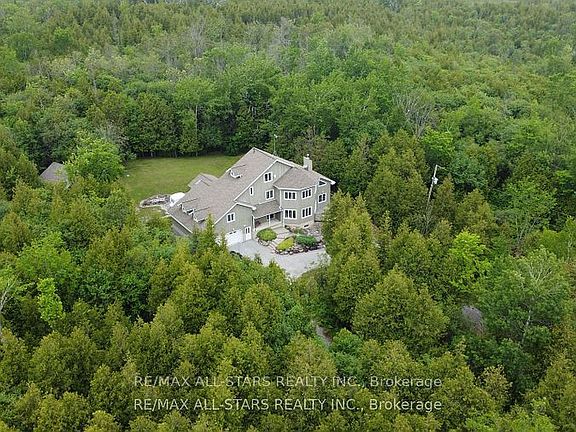 One of a Kind Secluded Beautiful Private Country Retreat on Forested 44.43 Acres With Trails. Property is High and Dry w/Abundant Wildlife. This 3500+ SqFt Custom Home is Immaculately Kept & Loaded With Built-In Features & Design Features That Will Surprise! The Energy Efficiency of This Home is Remarkable! Multiple Walkups & Walkouts Including A Laundry Room Complete With A Dog Built-In Bathing Area with Access To The 4 Car Garage & Walk into the 23' x 12' Indoor Exercise Swim Spa Room. This Transforms The Homes Wellness Experience. The Spa Measures 14' x 7' in the Year Round Solarium Style Room Complete with Skylights & Walkouts to the Yard! The Primary Bedroom is Bright, Spacious with a Sitting Balcony Overlooking The Yard, and a Mezzanine Overlooking the Dining Room. Walk-In Closet and a New 3 PC Large Bathroom with a Curbless Glass Shower. The Finished Loft Features an Open Concept Design with a Pine Staircase, A Beamed Cathedral Ceiling, Bulit-in Cabinets and a 2 pc Bathroom. The Room Described as the Study Would Make a Huge Ultra Bright South Facing 4th Bedroom. The 4 Car Tandem Garage Measures 27' x 30 ' With 2 Entrances into Your New Home! The Roll Up Garage Doors are 10' Tall x 8' Wide. The Separate Garage Measures 12' x 24' with a Covered Outdoor Storage Area. There Are Outdoor Multi-Level Decks In The Rear Connected By a Wrap Around Walkway To The Front Sunny South Facing 17'x15' Sitting Area!. The Open Concept Kitchen & Sunken Bright Great Room with Maple Floors and a Wood Stove Is The Center Piece of this Home. The Formal Dining Room with A Vaulted Ceiling is beside the Kitchen with a Walkout to the Large Wrap Around Deck. The Basement Consists of a Recreation Room, Cold Cellar, Utility Room and Mechanical Room with Ample Built-in Shelving. Private Drilled Well Water to The Heat Pump = Energy Efficient Home! Quick Access to Hwy 404, Keswick, Sutton and Along with Free Access to 9 Local Lakefront Parks of Lake Simcoe for Residents are Right There!