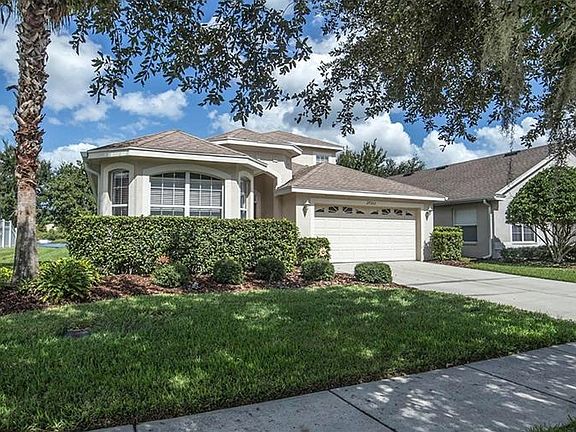 Come and see this beautiful move-in ready 4 bdr 3 bath home in the gated neighborhood of Knollpoint in the resort community of Seven Oaks. Inside you'll enjoy the comfort of a spacious split floor plan with lots of natural light, architectural niches and a gorgeous view of the water. Eat-in kitchen with a window nook boasts with granite counter tops, quality wood cabinets, decorative back splash and stainless steel appliances. Kitchen opens up to the living dining room combo room where you can entertain while enjoying the water view. Downstairs master bedroom has its own entrance to the covered porch and includes a luxurious bath with a jetted tub, double sink, separate shower and water closet and a huge walk-in closet. Upstairs you'll find the bonus room, 4th bedroom and a full bath that's prefect for teenagers or guests! Don't miss the new carpet downstairs in the bedrooms! Amenities in Seven Oaks include an active clubhouse & café, 3 pools, a splash pad, tennis, basketball, volleyball and several playgrounds. Close to the new mall and restaurants and just off I-75 for an easy commute to Tampa. CDD fee is included in the taxes. Priced to sell quickly and will go fast!