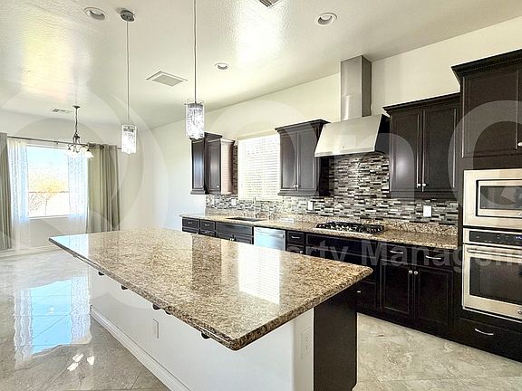 Available Now! 3,532 SQ FT! 4 bedroom, 3.5 bath home in Peoria's Tierra Del Rio! 2017 build with modern upgrades + smart home features throughout. Desirable single story floor plan! Stunning eat-in kitchen with stainless steel appliances, walk-in pantry, & expansive center island/breakfast bar. Breakfast nook dining with sliding door patio access! Kitchen opens to spacious family room, great for entertaining. Additional formal dining! Neutral interior with tile flooring in all the right places. Find two bonus spaces, each offering optimal flexibility + additional living space! Split bedroom floor plan offers 4 generously sized bedrooms, each with optimal privacy. Desirable dual primary suite floor plan each with walk-in closet + en-suite bath! Blinds + ceiling fans. Laundry room with included washer/dryer! **Installed RO System + Water Softener