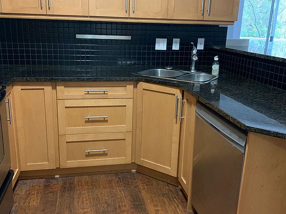 Corner unitSpacious kitchenPlenty of cupboardsStainless appliancesGas fireplaceWood floorsBalcony overlooking green space