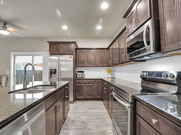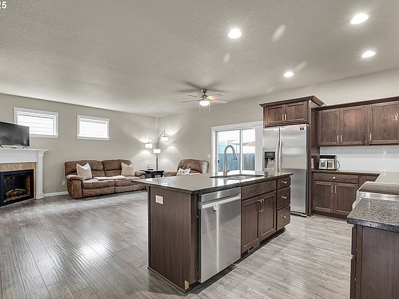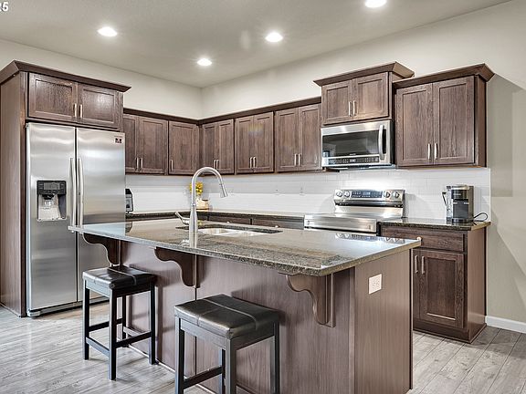 Forest Grove Delight! This impeccably maintained 4-bedroom, 2.5-bath home offers 1,759 square feet of modern living space designed for both comfort and style. The open floor plan features LVP flooring throughout the entire home. The spacious living area includes a cozy electric fireplace, perfect for relaxation, and sliding glass doors that lead to a private patio. The chef-inspired kitchen is a standout with granite countertops, abundance of cabinet storage, custom tile backsplash, stainless steel appliances, and a large island, ideal for cooking and entertaining. Upstairs, the airy primary suite offers vaulted ceilings, a walk-in closet with organizers, and a stunning en suite bath with double sinks and a walk-in shower. The remaining bedrooms are generously sized with ceiling fans, and ample closet space. The guest bath includes double sinks, soaking tub, and shower combo. The upstairs laundry room with built-ins and two additional closets upstairs, provide plenty of added storage. Forced-air zoned heating & cooling for customized comfort and energy efficiency. Freshly paint interior. Outside, enjoy low maintenance astroturf in the front and backyard. Fully fenced backyard creates an effortless private oasis with concrete patio, perfect for outdoor gatherings or quiet relaxation. Located in a highly desirable neighborhood just moments from Pacific University, McMenamins Grand Lodge, Downtown Forest Grove, and Highway 47, this home offers both convenience and charm. Open House Saturday, April 12th 2-4PM & April 13th 1-3PM.