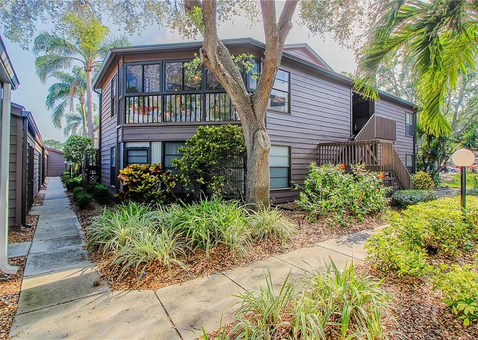 Nestled in the back of the 55+ community of Country Village, awaits the tranquil and TURNKEY FURNISHED 2nd floor condo you've been searching for. When you enter this unit, you are instantly welcomed by the bright light entering through your large, enclosed lanai and surrounding windows. The lanai is glass enclosed with sliding windows complete with screens to let in the fresh air, and you will love the peaceful privacy you feel while looking out into the trees. This beautiful and updated kitchen is complete with pull out drawers, newer appliances, closet pantry, and under cabinet lighting. The large master bedroom with walk-in closet is complimented with sliding glass doors giving you easy access to the lanai. Most convenient is that this condo comes with a 1 car garage right in front of your unit, along with ample guest parking. Country Village is an active community with heated pool, spa, shuffle board and other recreation activities. Call me for a private showing of this lovely condo before it's gone! Monthly HOA fees will drop to $360/month in August 2019 after stairs are replaced. Seller willing to help pay down current assessment with appropriate offer.