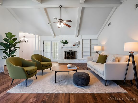 Cozy gas log fireplaceFresh paintEngineered hardwood floorsNew granite countertopsSmart efficient floor planCovered patioVaulted beamed ceilings