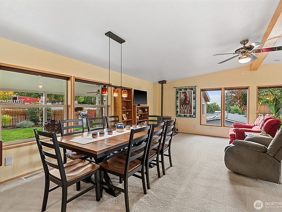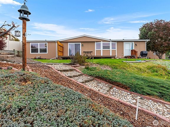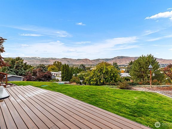 Enjoy effortless single-level living and stunning views of Wenatchee, and the Cascades in this beautifully cared-for home. Inside, you’ll find a comfortable and inviting layout featuring a large living and dining area warmed by a cozy pellet stove, plus an open-concept kitchen and family room designed to capture the views. The primary suite offers peaceful retreat space, complemented by a second bedroom and full bath. Recent updates include newer flooring throughout and a brand-new HVAC system for year-round comfort. Step outside to park-like grounds—fully fenced, meticulously landscaped, and set at the end of a quiet dead-end street for ultimate privacy. Detached garage with hobby shop included. Move-in ready and wonderfully maintained.