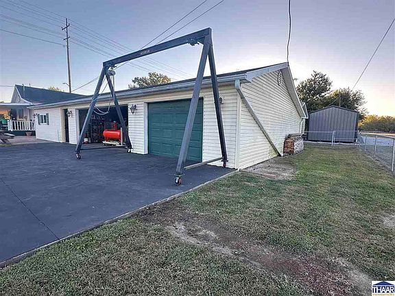 Charming 2-bedroom 1-Bath home featuring a wrap-around porch and two outbuildings. The second bedroom has a nice bonus room attached, perfect for an office, nursery, or as it currently is- set up for guests! All kitchen appliances, washer, and dryer included for convenience. Entertain guests outside on the wrap-around porch and patio that features an outdoor cooking area. The detached 3-car garage is 34' X 54', featuring a workshop and a half bath. This spacious garage is both heated and cooled for comfortable use year around. The next outbuilding is an 18' grain bin with a loft and 10' X 24' garage on the backside. Come check out the large lot and features this home has to offer. Conveniently located with easy access to 41, US 40, I-70, and 63.
