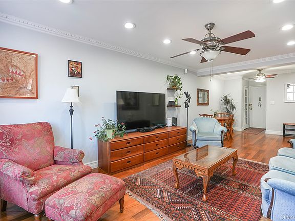 This quite, sunlit, top floor well-loved Home offers the perfect blend of comfort and convenience in a well-maintained cooperative that welcomes your pets. Step inside to find beautiful wood flooring throughout, french doors and elegant crown moldings, adding charm and character to the space. The windowed kitchen is a true standout, featuring oak cabinetry, sandstone countertops, stainless steel appliances, and a dishwasher—offering both style and functionality. Enjoy the oversized bathroom with a walk-in shower. This unit also includes a spacious walk-in closet, currently used as a quiet home office, providing extra flexibility to suit your lifestyle.