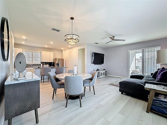 Welcome to this beautifully designed three bedroom, two bath home in the desirable community of The Sanctuary, Clermont, Florida. With undeniable curb appeal – tropical landscaping, corner lot and a spacious two car garage - the home sets the tone for what’s inside. You enter an open concept floorplan with a spacious kitchen equipped with stainless steel appliances overlooking a great room. The great room leads out to your backyard oasis – a screened patio and private fenced in yard. The split bedroom plan allows for added privacy as the primary bedroom is smartly located in the rear of the home . The flow of the home offers opportunity to entertain friends and family both inside and out. Beyond the home, the Sanctuary community provides a community pool, park, and fitness center adding to its appeal. While it feels peaceful and private, you are conveniently located near highways, shopping, dining and more. Call today to schedule a tour. This could be your dream home.