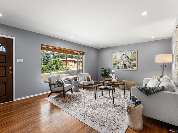 Price adjustment! Large mid-century brick ranch on huge lot in Harvey Park South. Many updates already in place, including new appliances and hot water heater (2022) new sewer line (2024) and new furnace and central AC (2020) Extra attic insulation (2023) and attic fan keep you cool in summer, warm in winter. Seller offering $15,000 credit for window replacement with acceptable contracxt. Hardwood floors throughout main floor, which also features both a full and 3/4 en suite bath! Huge 43X13 family/kids rooms in the basement is ready for entertaining, movies, etc., and features a brick fireplace (not currently in use) Generous storage in the basement, along with a laundry area with utility sink, 3/4 bath, and non-conforming fourth bedroom/office. Large & private backyard is fenced for your dogs and ready for gardening, plants, and barbeques. Two car attached garage with additional off-street space for cars and RV parking. Home is just minutes to the Loretto Heights redevelopment, Bear Creek Park, Harvey Park, and a short drive to River Point shopping (Costco, Target), King Soopers & Home Depot, and the shops and restaurants of Belmar. Best of both worlds - 15 minutes to Red Rocks or Downtown Denver! Home is vacant - go and show! Ready for move-in ready now while you plan future updates! Buyer to confirm all measurements.