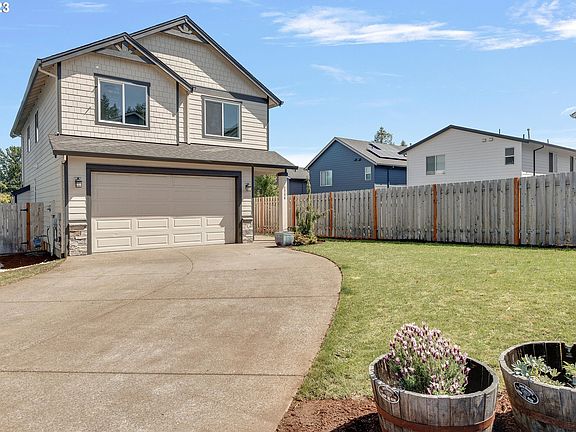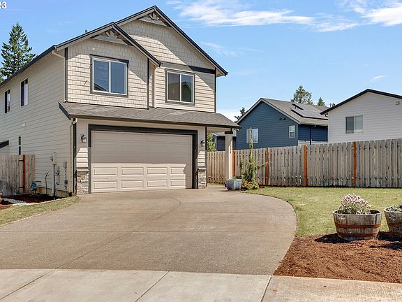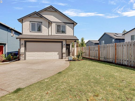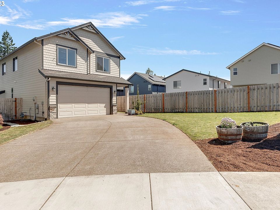 This home is nestled on a quiet cul-de-sac that borders green space. Large front yard, private back yard, and relaxing huge patio. Ideally located with short commutes to nature parks with trails, Historic Gresham and Historic Troutdale downtown areas with all the amenities of shopping, dining, summer Saturday markets, art shops, antique stores, and more. Easy access to I-84, Highways 26 and 212, the Gorge, and Mt. Hood! Barlow School District. Spacious plan offers abundance of natural light! Entry hallway extends into an open concept great room & kitchen/dining room. High ceilings with continues laminate floors thru-out main level. Kitchen w/breakfast bar, island, plenty of cabinets, stainless steel appliances & quartz counters. Great room with fireplace and sliding door to partly covered huge patio. Loft space upstairs ideal for computer station or reading space. Huge primary suite with walk-in shower and spacious closet space. Laundry. Central A/C. Garage with storage space. Large private back yard with water feature, raised garden beds, and gates on both sides. Lets get you home for summer BBQ's!!!