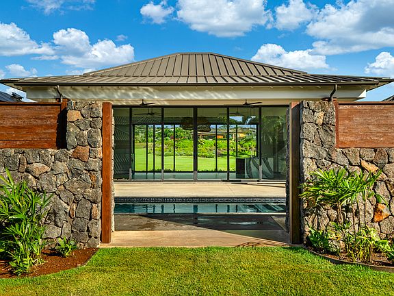 Experience the tropical private rock wall showers off both en-suite baths ideal for Kauai’s warm weather. One of the en-suites enjoys its own separate entrance, ideal for guests. This home offers central AC throughout, automatic blinds, built in surround sound system in the great room and pool area, a large two car garage, and is enhanced with a Tesla battery and photovoltaic panels. Located in the visitor destination area (VDA), this home is perfect whether you are seeking a luxurious Kaua’i retreat or a rental property.