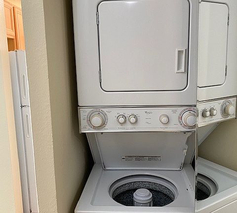 Unit amenities include: fireplace, balcony, dishwasher, washer, dryer, and assigned parking for one vehicle.