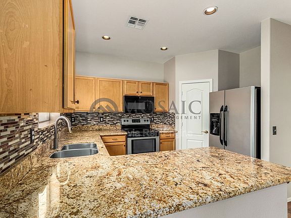 This warm and inviting 3 bed/2 bath home features many fine upgrades throughout. You will notice the beautiful granite countertops in the kitchen, along with tiled backsplash, stainless appliances and pantry. In the living room there is lovely hard wood flooring and tons of natural light with powder room downstairs. Upstairs, the owner's suite provides a welcoming retreat. The bathroom features the same beautiful granite with dual vanity, large walk in shower and separate soaking tub. Enjoy relaxing in your back yard on the extended covered patio with flagstone walkway and lush landscaping.