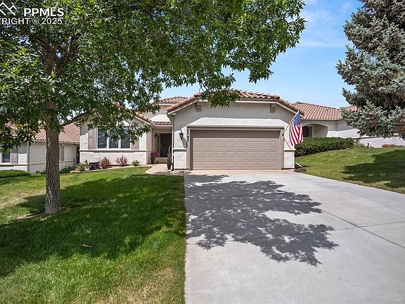 Experience comfort, style, and stunning mountain views in this fully renovated sanctuary in the gated Cypress Ridge community. This exceptional four-bedroom, three-bath patio home offers the perfect blend of luxury and low-maintenance living. The open-concept floor plan offers a welcoming foyer, soaring ceilings, hardwood flooring throughout the main level, and abundant natural light. The gourmet kitchen is designed for both everyday living and entertaining — featuring granite countertops, stainless steel appliances, a large island with room for seating, ample storage and a dining area. The adjacent great room includes vaulted ceilings and a cozy gas fireplace, creating a warm and inviting space to gather. Step through French doors to your private outdoor retreat — a composite deck with a freshly refinished pergola, surrounded by mature trees and mountain views. Whether enjoying quiet mornings or hosting summer dinners, the outdoor space is truly special. The spacious primary suite offers a spa-like five-piece bath with quartz countertops and tile flooring. There is one additional bedroom and one full bathroom on the main level to provide versatility for guests or work-from-home needs. The finished, garden level basement adds more living space with a large family room, third and fourth bedrooms, a full bath, a large mech area and storage room that would make a perfect gym, craft room, or hobby space. *BONUS* Tucked discreetly beneath the stairs, a hidden room with a custom concealed entry offers a versatile bonus space — perfect for a wine cellar, private office, or secure storage. Unfinished and ready for whatever you imagine. The safe & combo remains with the home. Additional highlights include: • Tankless water heater • Air conditioning • 2-car garage • Quality 2x6 construction • Sump pump • Gorgeous views of Pikes Peak Located in a quiet, gated cul-de-sac in desirable Briargate (District 20), this home is move-in ready and GORGEOUS!