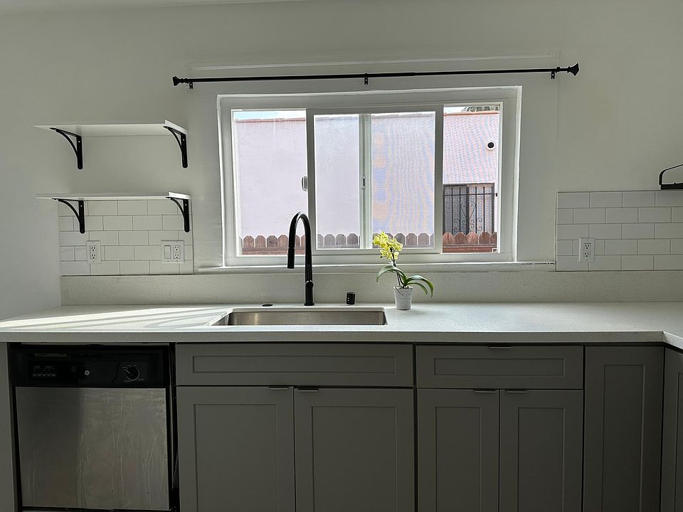 Coming July. Tree lined street with ocean breeze. Newly refurbished rent-controlled West Adams adobe style 1920's house. Well lit and spacious kitchen with big windows, new appliances and Samsung W/D. Both bedrooms have windows on two sides and full en suite bathrooms. Floor plan has separate dining, living and kitchen areas with original arches and built-in shelving. Off-street parking in the driveway. Palm trees and sky views from kitchen and living room. Home includes a front yard and back patio area. This is a multi-family property with two bungalow apartments in back. Blocks away from West Adams cafes and restaurants. Whole Foods, train and freeway nearby. Please self screen. Tenants to have 3x rent as income, plus a minimum credit score of 700. Tenant to have renter's insurance. Owner pays water and sewer. Pet-friendly! Ideal for a couple, small family or individual ready to call West Adams, "home." Coming July. This newly renovated, rent controlled, non-smoking, pet friendly home, will be delivered with one off street parking space. Tenant to have renter's insurance. Owner pays water and sewer. House is free standing, and shares the lot with two one bedroom apartments in the back.