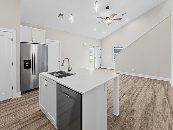 Step into this beautifully designed home offering spacious, open-concept living at its finest. With vaulted ceilings above the living, dining, and kitchen areas, this space is perfect for both entertaining and everyday living.