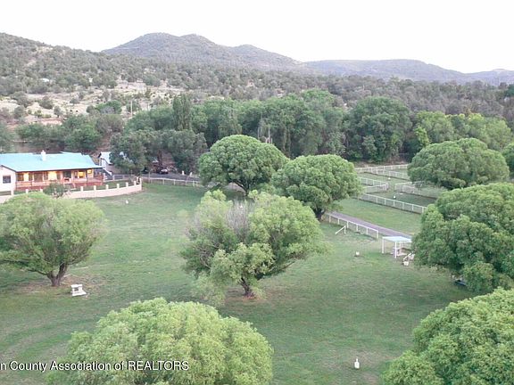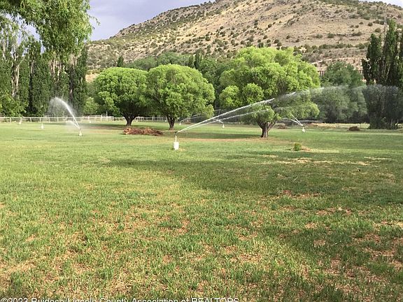Enchantment Farm is truly enchanted. This 17 acre irrigated farm along the Rio Ruidoso River is the most peaceful setting in the valley. Custom 3BR/2-1/2BA home sits stately above the irrigated pastures of globe willows and poplars. The main home is one level, 3056 sq ft of living space with updated kitchen fireplace and radiant floor heat. You'll love the 16'x16' outdoor covered patio with fireplace. Guest house was built in 1905 and has 2BR/2BA. Brand new well installed 3/2023. 17.28 acre feet of 1864 senior water rights from the Antonio Sanchez Ditch via 12'' underground pipeline through 34 large Rainbird sprinklers. Barn is made of adobe and open for good ventilation. There is also a 50 yard & 100 yard shooting range. This property is special and there's too much to list...