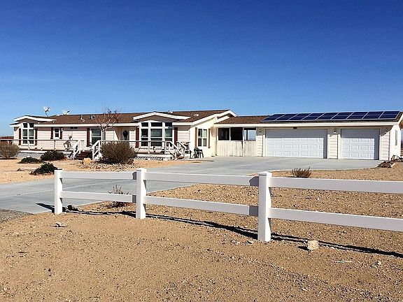THIS IS A BANK OWNED - PRICE $158,800 HORSE PROPERTY or room for other animals - This BEAUTIFUL newer manufactured home in Bonanza Valley Ranchos is spacious 2329 sq ft on 2.10 fully ranch fenced acres, permanent foundation, 4 bedrooms includes a master retreat/bonus room, large master walk-in closet, large bedroom closets, lots of storage, 2.5 baths, formal room and family room, wood burning fireplace, large kitchen with awesome views and lots of cabinets, large walk-in butler pantry with more storage, 3 car (insulated) garage with breezeway/patio, 15'x40' back yard patio. Large arena/ turnout area for horses or large animals. Property is zoned rural living = up to 8 horses or bring your other animals. This is #1 floor plan in the development and the only one available. Neighborhood Description Bonanza Valley Ranchos is a small development. All homes are on approx 2 acres located just a few miles from Silver Lakes, centrally located between Victorville and Barstow off of Route 66. Valley is extremely quiet and peaceful, the stars are incredibly bright and the neighbors are very friendly. This is a perfect place to live if you enjoy dirt biking, riding horses, and like space between your neighbors and still want a small community feel. The schools are within minutes of our home and are producing the top test scores in the state.