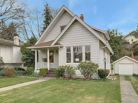 Welcome home to this classic 1920 Craftsman in heart of West Seattle! This home boasts three bedrooms and bath upstairs, is just a couple blocks from Lafayette Elementary, has a formal dining room and remodeled kitchen including an island with granite counters. With build-ins, leaded glass and two stair cases the original charm is intact. Along with the curb appeal, there is a single car garage and private backyard. All this and Alki, the Admiral District and the Junction just around the corner!