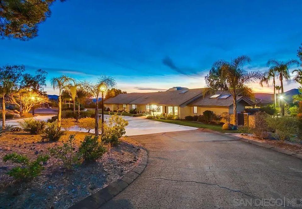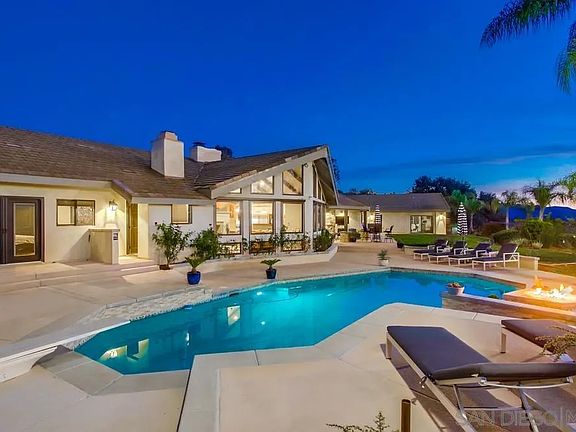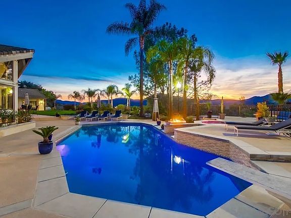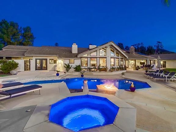 Sprawling remodeled estate home in Rancho Jamul Estates. Enjoy resort-style living on over 2.5 acres with sweeping panoramic views of surrounding mountains. Impressive great room with vaulted ceiling, exposed wood beams, spectacular fireplace, wood flooring, gourmet kitchen w/2 islands, fireplace, professional grade appliances, 60" fridge, spacious master retreat, high-end finishes & fixtures & huge laundry. Huge Master suite with fireplace and sitting area. Fifth bedroom is a retreat off of the Master and is currently configured as an office. Separate gym is accessed from both the backyard and garage. Huge rear yard with lush landscaping, solar heated pool, spa, manicured lawn, putting green, expansive decking, and covered sitting area with fireplace. Oversized three car garage with tons of storage, coated floors and electric vehicle charging, owned solar, and so much more! See Supplement for additional features.